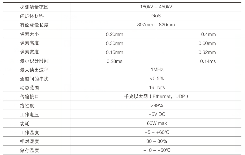 ● 探測能量響應(yīng)范圍:90kV - 450Kv;